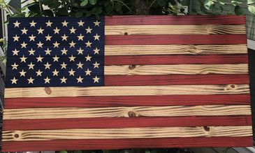 This is how our small family business got started with the creation of handcrafted torched rustic wood flags. Below is the structure in which we create flags: Standard, Civil Service, Design in Union, Design in Stripes.